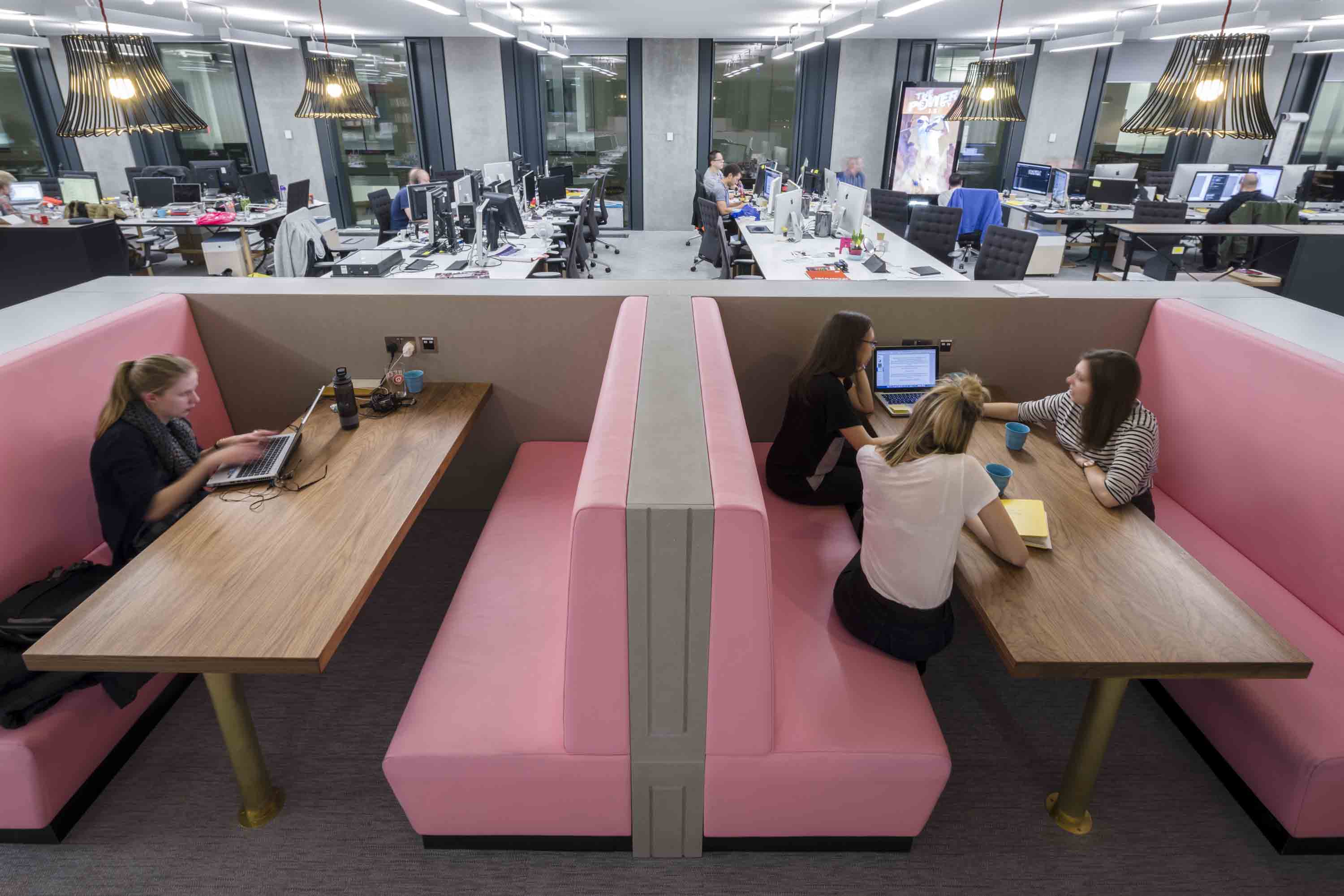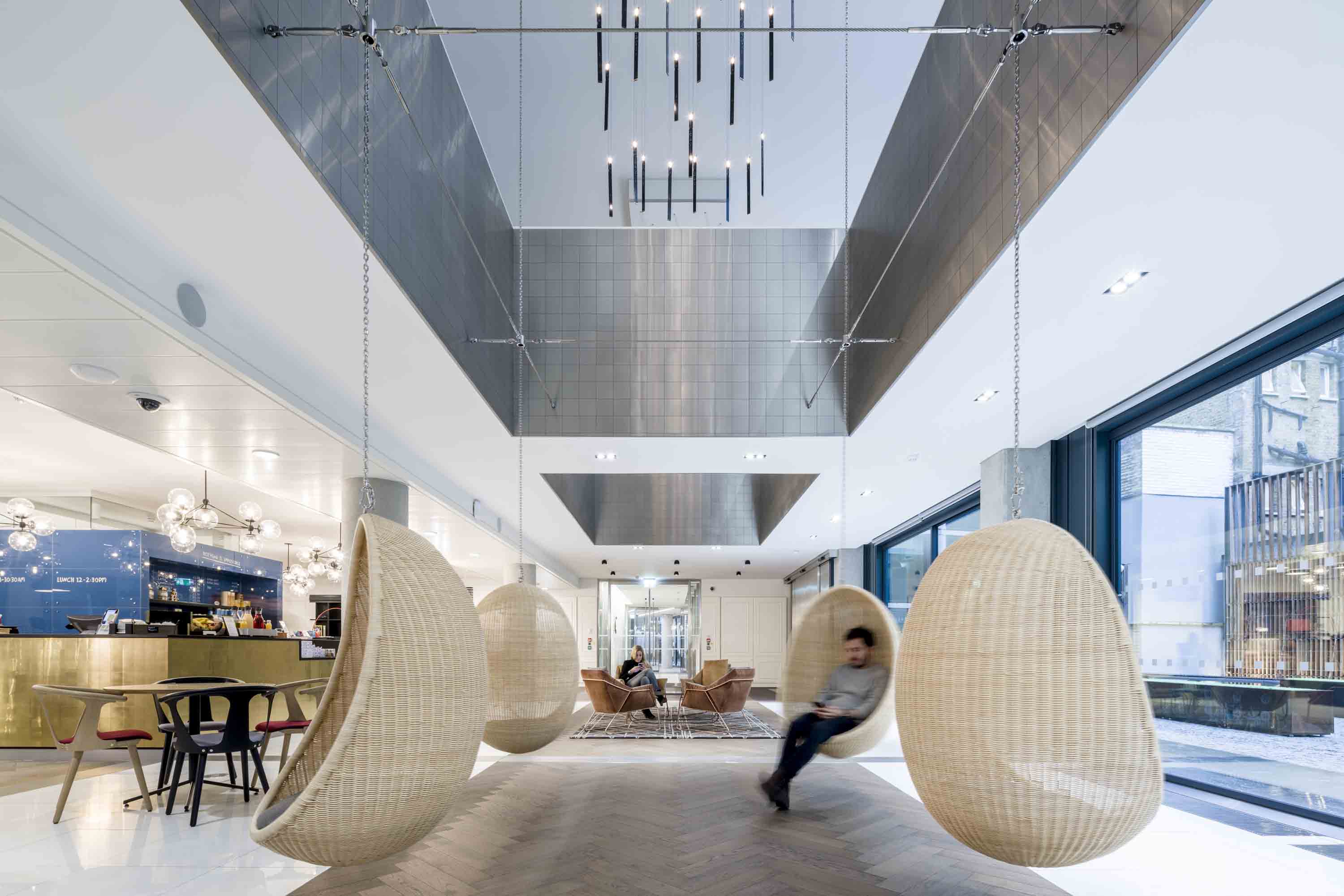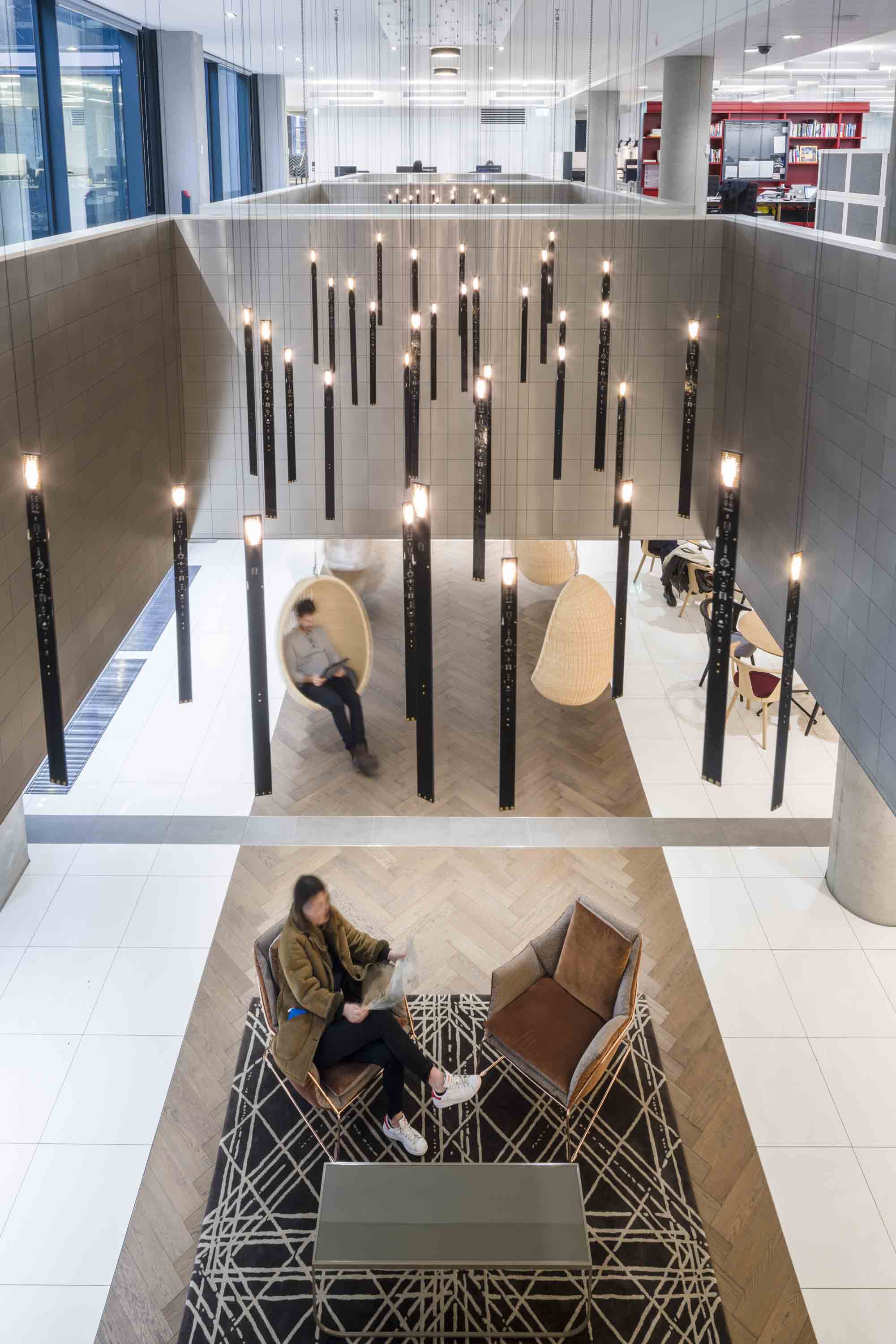 Inside, a traditional ground floor reception area has been dispensed with in favour of an open plan social hub that enables visitors to mix with employees as soon as they arrive and gain immediate insight to the philosophy of Saatchi & Saatchi and its creative approach.