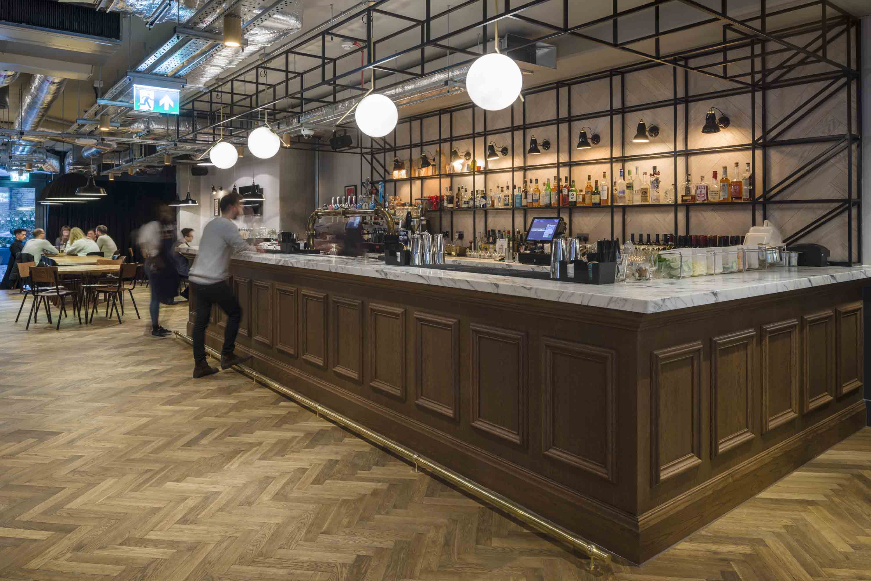 Working closely with Saatchi & Saatchi, Jump Studios has taken the 100,000 sq. ft, seven storey blank canvas provided by this Bennetts Associates’ designed, Derwent London development, and created a bespoke and welcoming workspace that evokes the spirit of Saatchi & Saatchi as soon you enter the building. In doing so, they have also found space to re-open the agency’s in-house Charlotte Street pub, The Pregnant Man; named after Saatchi & Saatchi’s much celebrated 1970 campaign for the Family Planning Association.
